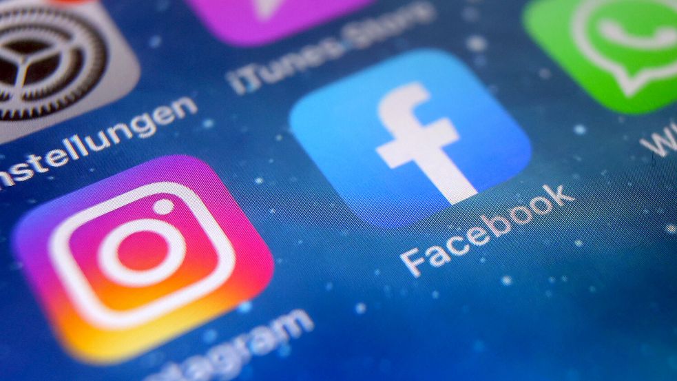 Auf dem Bildschirm eines Smartphones sind die Icons von Instagram, Facebook und WhatsApp zu sehen. Eine Meldung über einen Mann in Hinte wurde über 1700 Mal geteilt. Foto: Karl-Josef Hildenbrand/dpa