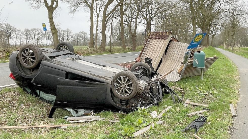 Unfall zwischen Filsum und Nortmoor Autofahrer kommt von Straße ab und zerstört Buswartehaus