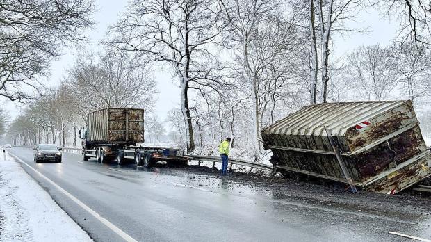 Lastwagen mit acht Tonnen Schrott rutscht in Großefehn in Graben